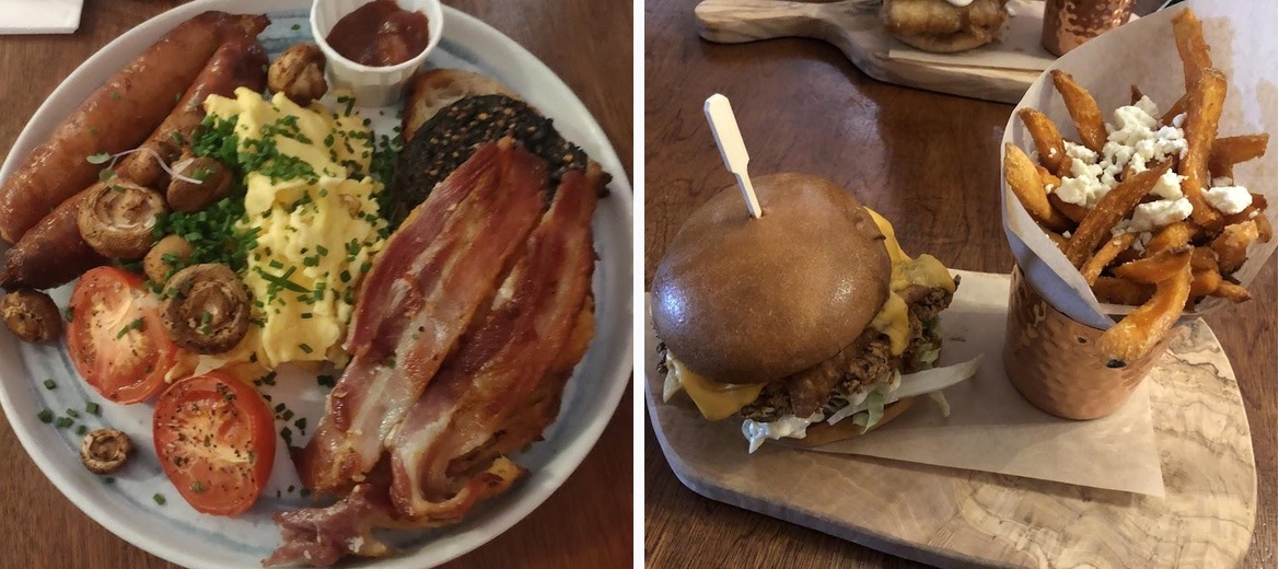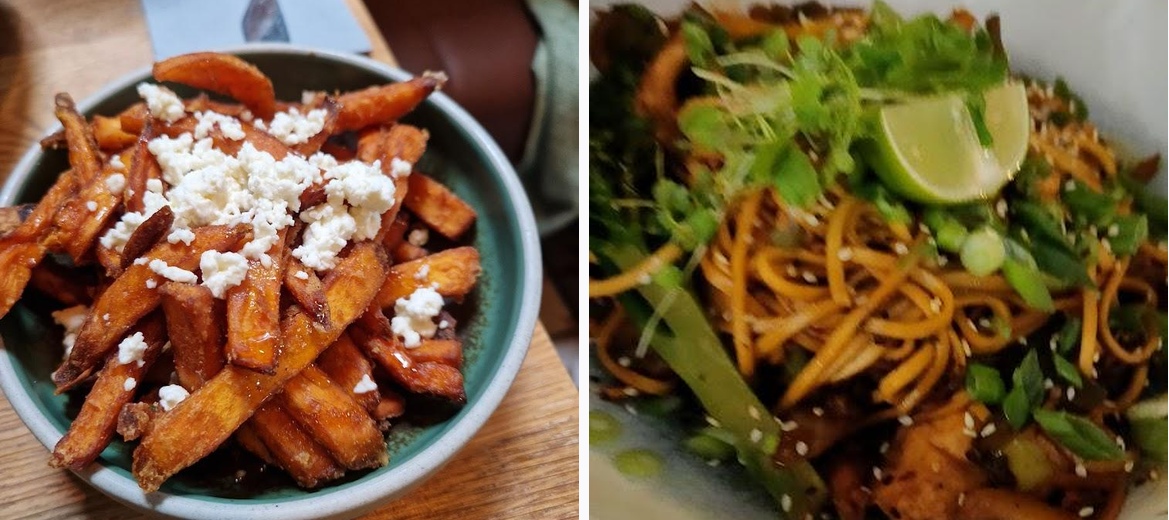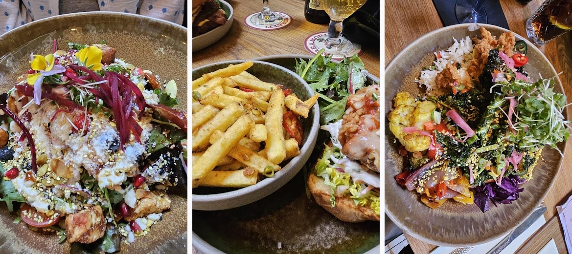 Absolutely loved this place. V busy when we arrived, but we sat at the bar and had a drink. Watched the staff making elaborate and delicious looking cocktails, whilst chatting to us. Would happily have sat there all day, taking in the atmosphere. Lovely decor, reminded me of Havana. And loads of lovely details, down to the pretty teaspoons with our coffee. The food was so good too. Had the Marrakech salad - a colourful mix of falafel, hummus, quinoa, crispy kale, asparagus and tender stem broccoli, with a few raspberries, blueberries, strawberries and blackberries too. Superb! Also had the veggie muffin, the chicken soft tacos and some skinny fries and gochujang sweet potato fries. All of it was tasty, freshly prepared and served up by really personable staff. Would travel to eat here! We are already figuring out how to come back as we live 90 mins away! Great veggie options, many of which could be vegan with tweaks.